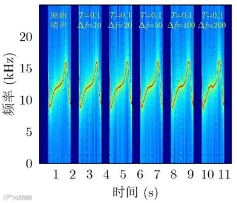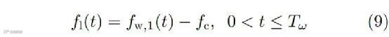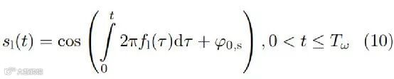其中,固定频率fc为最终频移键控信号载波频率。基于该时频谱轮廓f1(t),产生本地哨声信号s1(t):
