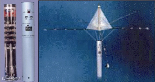 声呐浮标是一种抛弃式航空声呐系统,一般装备于固定翼反潜飞机上,包含浮标投放装置、无线电信号接收机和信号处理显示设备等。使用时,反潜机先将浮标组按一定的阵式投布于搜索海区,然后在海区上空盘旋以接收由不同浮标经无线电调制发射的目标信息。典型的声呐浮标有澳大利亚的BARRA和美国的ADAR系统,前者包含的水听器阵列是一个5×5的多环平面阵(见图3),后者则包含一个40元的体积型水听器基阵。