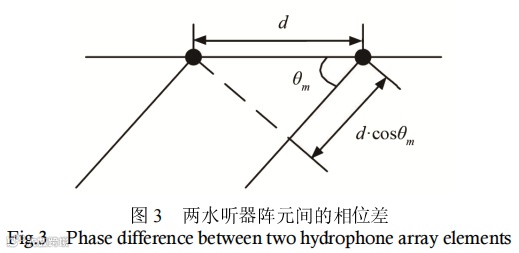 两个水听器阵元接收信号的相位差φ 和信号入射角θm的关系为