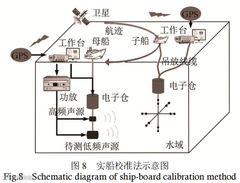 随着换能器工作频率的降低,实验室消声水池难以满足其指向性的测量条件,本测量方法提出利用超短基线定位和坐标转换原理,在开阔水域下对大尺寸低频换能器的指向性进行测量。与消声水池中的测量结果相比,测量误差满足国标要求,并且实现了实船检测。在测量舰载声呐这类不易拆卸,需要实船检测的低频换能器方面有很好的应用前景。本文提出的测量方法仅在湖上验证了可行性,在海洋或者深水环境下测量时,需考虑水深、水温对声速的影响。同时,应对更低频率的换能器进行试验验证。
