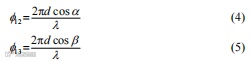 式中:α 为声源与1、2号水听器阵元构成的x轴夹角;β为声源与1、3 号水听器阵元构成的y轴夹角。