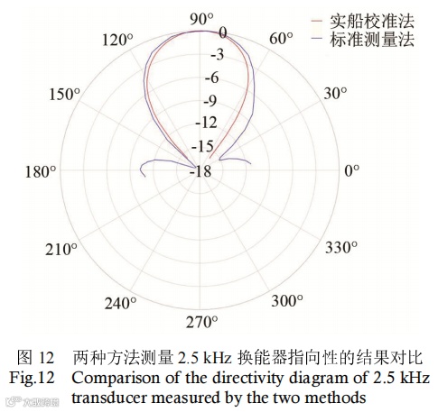 由图11发现,在90°~95°时指向性存在较大偏差,分析后可知,由于绕船航行次数过少,该部分数据缺少,导致其指向性图中偏差较大,可通过增加航行次数来解决此问题。