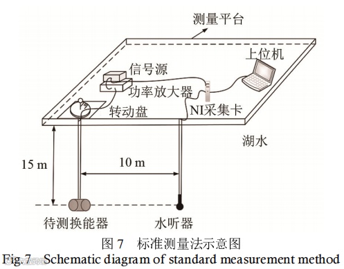 在湖上用标准测量法测量待测换能器的指向性,测量系统示意图如图7所示。