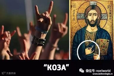 这个手势常常被看成是摇滚手势。实际上,这个手势已有数千年的历史,与驱魔和辟邪有关,在某些东正教的圣画像中可以看到基督和圣人们向前伸出小指和食指。现在的俄罗斯人通过做这个手势来显示自己的权威,有威胁别人的意思。在欧洲南部国家,这个手势用来侮辱别人戴了绿帽子。