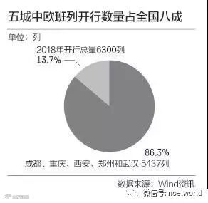 从全国来看,中欧班列去程和回程比例为3:2,其中一些主要城市更为均衡。比如,2018年中欧班列(重庆)去程714班,回程728班;中欧班列(郑州)去程416班、回程336班;中欧班列(武汉)去程发运172列,同比增长6.8%,回程发运245列,同比增长13.4%。