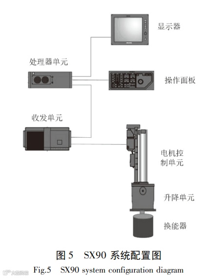 随着计算机信号处理能力的增强以及声呐软硬件技术水平的提高,结合人工智能、神经网络等算法学科交叉融合,海洋渔业声学装备关键技术发展突飞猛进[35]。多波束渔用声呐在不同的扫描方式下其稳定性和可靠性均得到了验证[10]。目前国内外科考船及远洋渔船上配备的多波束探鱼仪主要为 SIMRAD 旗下的 SX90、日本古野旗下的 FSV-35 以及 MAQ 旗下的 MAQ 多波束系列, 图 5 展示了 SIMRAD SX90 的系统配置。