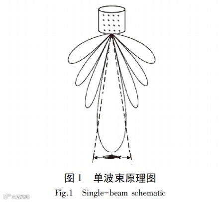 单波束技术早在 20 世纪 30 年代中期就应用到渔业声学领域中,可用来估计单个目标的距离。形成单波束的渔用声呐是利用换能器基阵的极大值方向,将声程差补偿到某一个需要探测的方向上来达到定向[12-15],其探测原理如图 1 所示。单波束传感器的灵敏度取决于目标相对声轴的方向,接收到的信号没有提供关于目标方向的信息,因此无法探测到目标方位[11]。