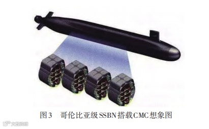 采用创新的通用导弹舱 (CMC) 和模块化设计,通过灵活的战斗模块搭配实现作战能力的多元化,提高武器装备的通用性并降低成本。该技术将导弹发射筒与舱段一体化设计,每个导弹舱配备 4 个发射筒,该级艇搭载 4 个导弹舱共 16 个发射单元,除了可以发射三叉戟2 D5导弹乃至未来的新一代潜射弹道导弹之外,还可以发射多种有效负载,其中包括潜射常规中程弹道导弹(SLIRBM)、高超声速打击导弹、巡航导弹、无人潜航器、无人机等。这种特性,使得部分SSBN在需要时可改装成 SSGN/SSBN 多用途艇,既可执行战略巡航任务,也可执行常规快速全球打击任务,还可执行反导、侦察等多重任务,实现战略与战术平台一体化,进一步推动潜艇向多功能化方向发展。该级艇搭载CMC想象图见图3所示。