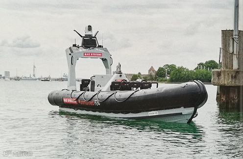 与此同时,BAE System公司已在支持英国皇家海军(RN)的“NavyX技术加速器”项目,该项目于2019年4月设立,作为自主系统和AI创新技术的孵化器和加速器。BAE公司正在开发的是基于他们7.8 m Pacific 24(P24)刚性充气艇(Rigid-Inflatable Boat,RIB)的USV,P24已是为海军护卫舰、驱逐舰和海岸巡逻舰(Offshore Patrol Vessels,OPVs)配属的标准救生艇。