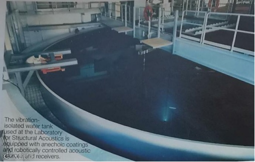 NRL的声学部主要有3个分部。物理声学分部、声学信号处理和系统分部都位于华盛顿特区的NRL中;声学模拟和战术分部位于密西西比州斯坦尼斯航天中心(Stennis Space Center,SSC)的NRL园区中,她主要针对舰队反潜(ASW)问题研究环境声学。NRL的结构声学实验室(Laboratory for Structural Acoustics,LSA)是独一无二的实验室,主要设备是一座大型掩埋式隔振水池,装有消声覆盖层、自动控制的声源和接收机。在该实验室中,研究人员运用紧缩场和近场声学全息技术做了许多结构声学实验。LSA能够在结构声学方面进行精确测量。