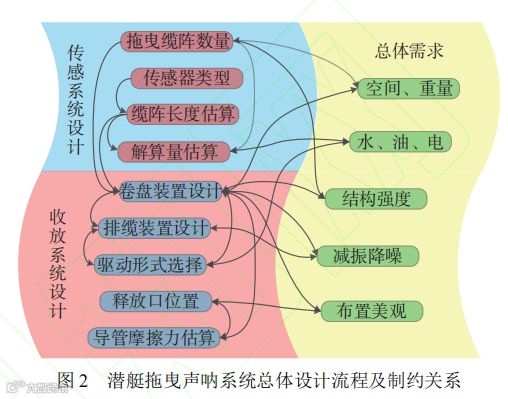 Fig. 2 The overall design process of submarine towed array sonarand the constraints from different elements