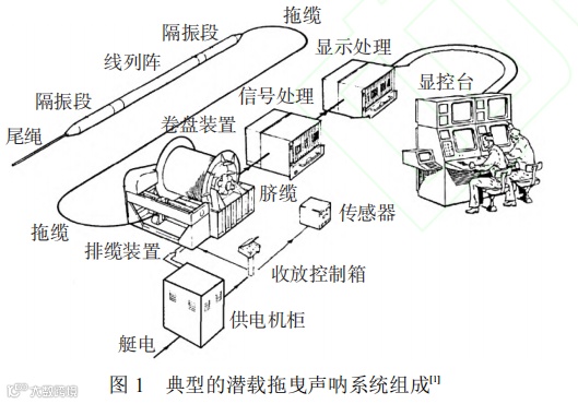 Fig. 1 Typical composition of towed array sonar system for a submarine[1]