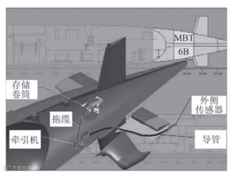 图 2 美国 TB-29A 细长线阵及其收放系统示意图