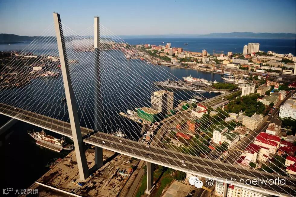 符拉迪沃斯托克的俄罗斯岛大桥横跨东博斯普鲁斯海峡,或堪称俄罗斯近年来最引人关注的建设项目。为2012年亚太经合组织峰会建造、号称世界上最长斜拉桥的俄罗斯岛大桥,中央跨度达1104米长。这座象征着俄罗斯在太平洋地区实力的大桥,造价高达11亿美元。
