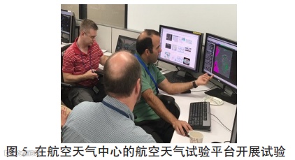 NOAA的研发成果在部署前需进行详细测试,逐步推进研发成果从研究、发展阶段向示范、部署阶段转变(图 4 ),促进向预测、警告、产品、服务和决策支持的过渡。这些测试主要在 NOAA 的12 个试验平台和试验场进行,包括:装备开发测试平台、北极试验平台、航空天气试验平台(图 5)、气候试验平台、沿海和海洋模拟试验平台、运营试验场、静止环境观测卫星试验场、危险天气试验平台、水文气象试验平台、卫星数据同化联合中心、联合飓风试验平台、太空天气预报试验平台等。