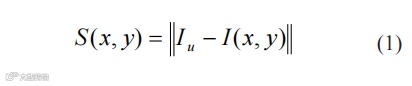 在目标初始定位阶段,根据海面目标与背景在颜色上的差异采用显著性检测算法初始化目标框,即利用某个像素和整个图像的平均色的色差来计算显著性值,同时结合高频滤波和形态学分析方法可以有效的定位目标 [15-16],显著性值计算公式如下。