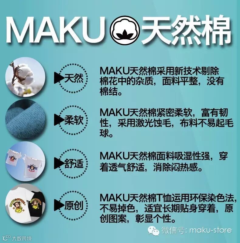 MAKU以包包、钱包起家,并且因“以旧换新”这一独创而且又实惠十足的售后服务,迅速成为国内,台湾以及东南亚年轻潮人热选品牌之一,后来逐步向综合品类发展,涵盖了服装,服装配饰,旅行系列,文创产品等,其中服装类别只专注去做T恤、polo衫、棒球服和卫衣这几种基本服装产品。