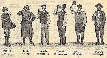 俄罗斯照例曾是最不能饮酒的欧洲国家之一。在欧洲比我们喝的少的只有挪威。从17-20世纪初这三百年间我们在世界人均对酒的需求量上排名一直是倒数第二。