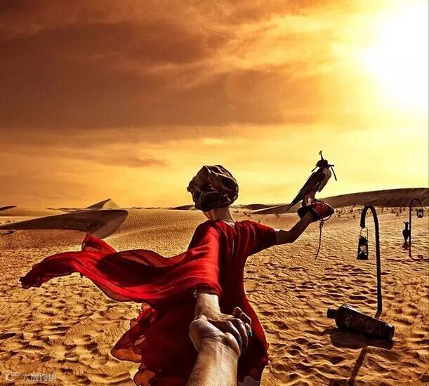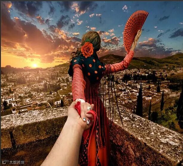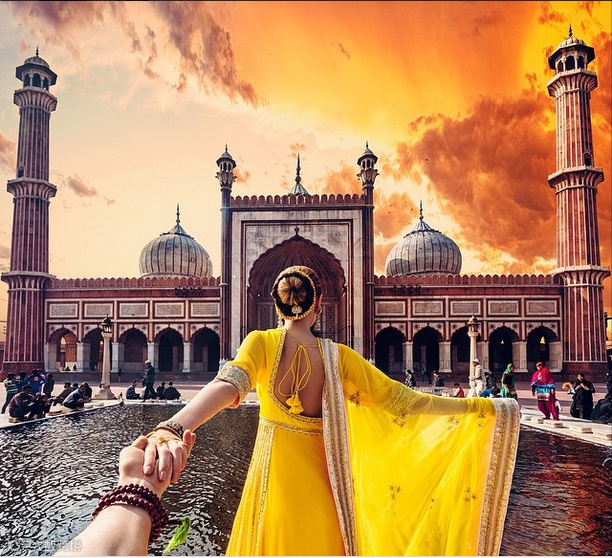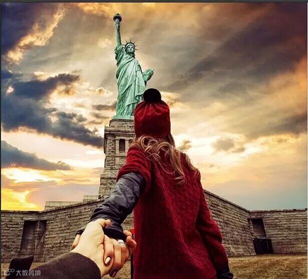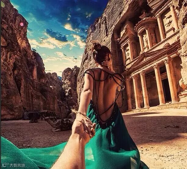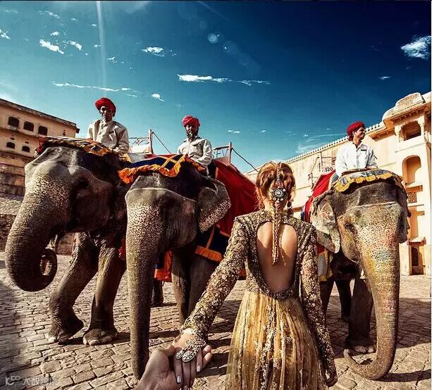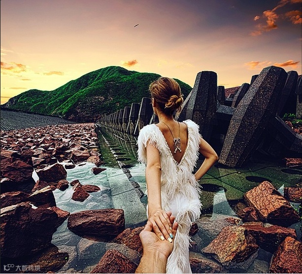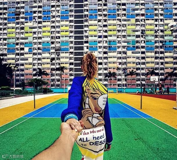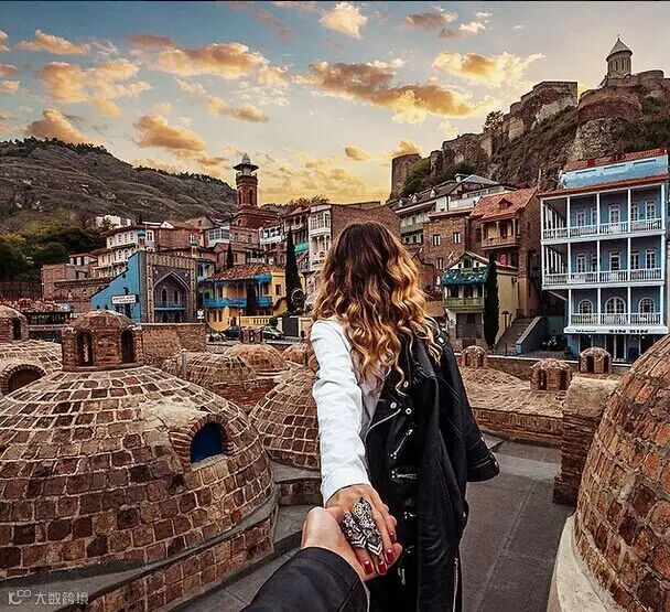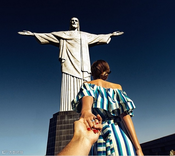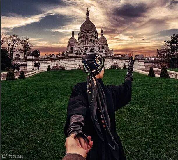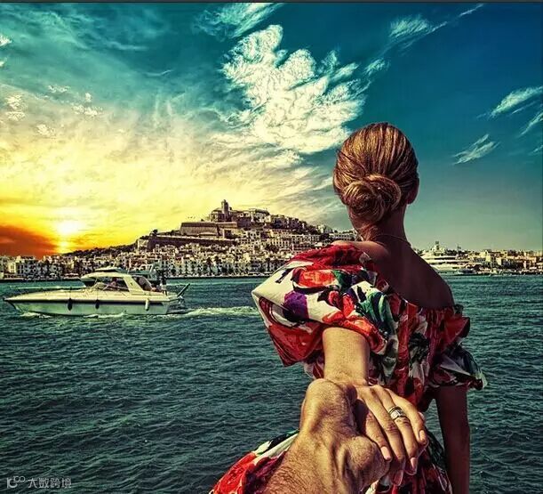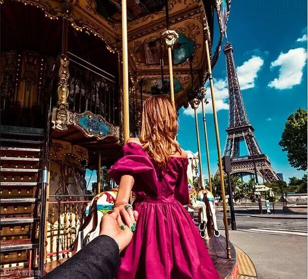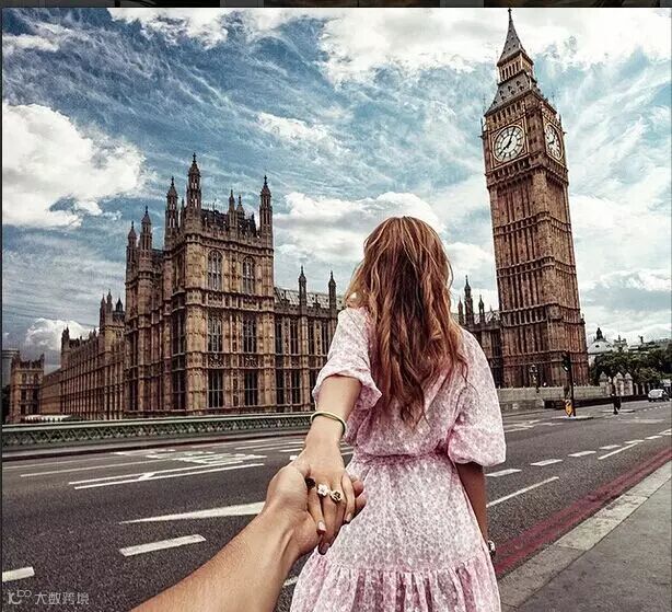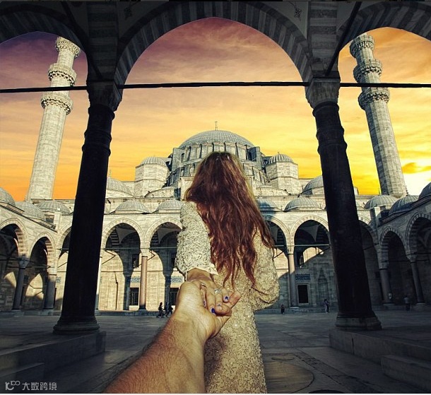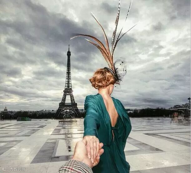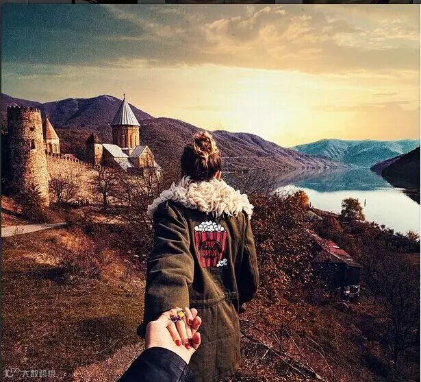 每个地方都留下他牵着她的手的背影的照片,