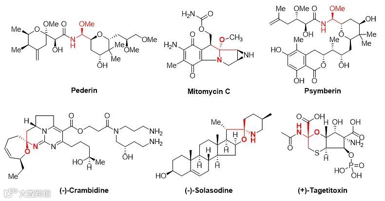 图1. 具有N,O-缩醛结构的生物活性分子。图片来源:Nat. Commun.