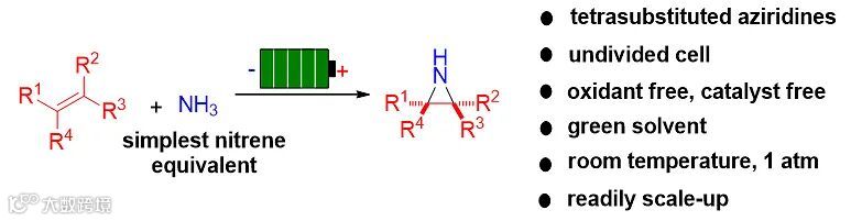 图1. 电化学条件下氨和多取代烯烃的氮杂环丙烷化反应