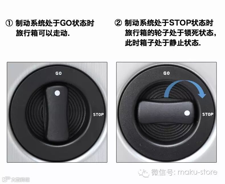 当刹车系统进入使用状态时,箱子在行进中的高铁、地铁、公交车上可以处于静止状态,避免尴尬滑动。