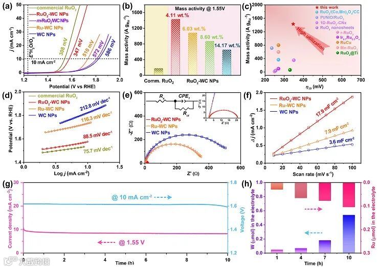 图3. RuO2-WC NPs 在 0.5 M H2SO4 中OER性能测试。