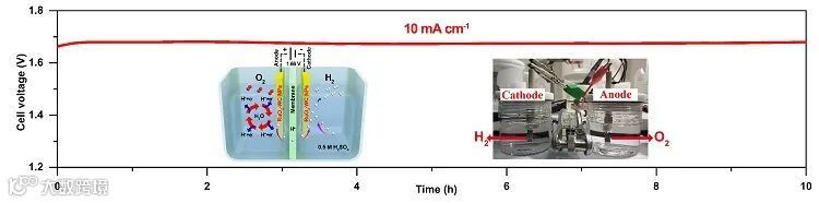 具有优异OER和HER性能的RuO2-WC NPs双功能电催化剂同时被用作PEM电解槽的阴极和阳极,在电流密度为10 mA cm-2时,电解槽电压仅为1.66 V。