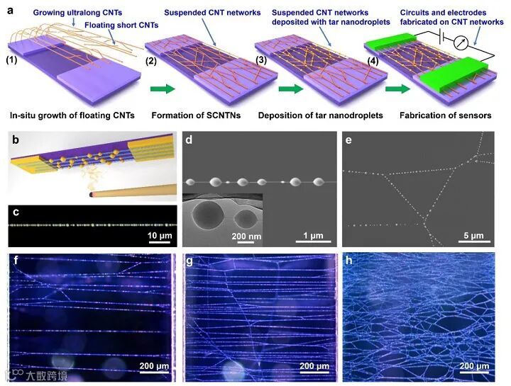 压阻式气流传感器是一类结构简单且较为常用的传感器,它的工作原理是利用压阻材料在外力作用下发生形变时产生的电阻值变化检测外力的大小。从材料选择的角度而言,柔性、密度低且界面面积小的压阻材料更适合用于高灵敏度、快响应的气流传感器的制备。碳纳米管由于其具有纳米级直径、高长径比、高柔性、低密度、优异的力学和电学性能,理应是制备高性能气流传感器的理想材料。然而在先前的相关报道中,碳纳米管经常被用来与其他材料复合,形成混合的体相材料,因而会使传感性能大大降低。另外,基于复合材料的气流传感器由于其结构复杂,其传感机理大多仍不明晰,从而难以为未来高性能气流传感器的设计提供指导作用。