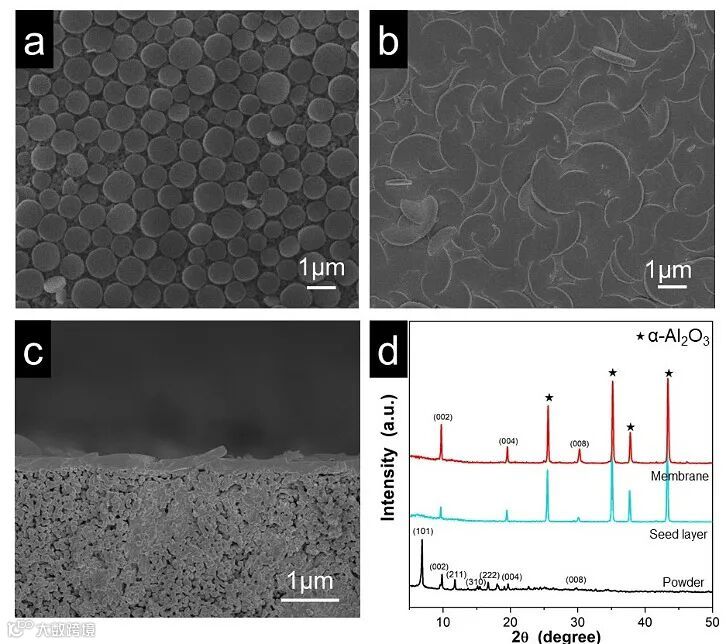 图4. NH2-MIL-125(Ti)晶种层及其膜的形貌特征