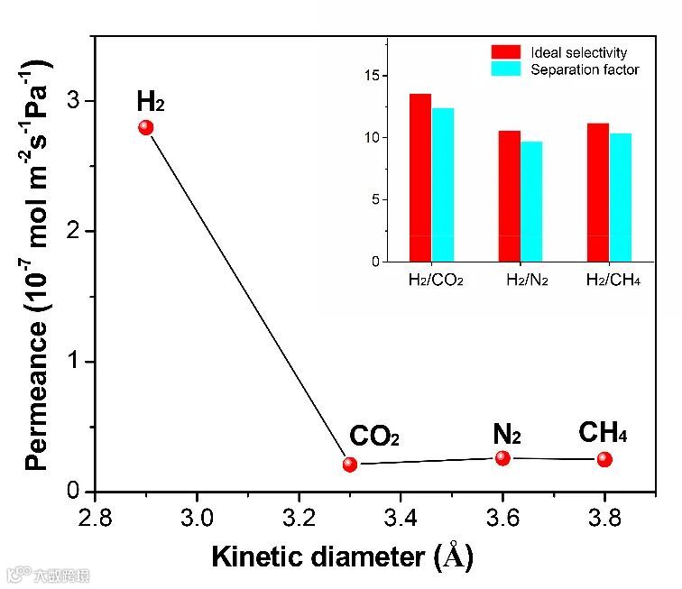 图5. NH2-MIL-125(Ti)膜气体分离性能