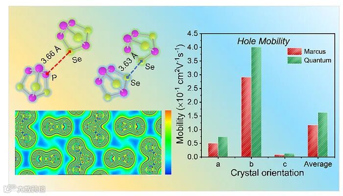 针对上述困境,翟天佑教授和帅志刚教授系统地研究了二维无机分子晶体α-P4Se3中由异常短的分子间Se-Se和P-Se原子接触诱导的强分子间相互作用,并明确揭示了强分子间相互作用的显著影响。在该研究中,作者首先通过X射线光电子能谱等光谱学手段明确证实了这种强分子间相互作用,并发现强分子相互作用对能带的重整显著减小了材料的带隙。随后,将光谱学实验现象和基于量子核隧穿模型的理论计算结果相对照,提出P4Se3强分子间相互作用的物理本质为分子间高的电荷密度的观点,并揭示其对分子间电荷输运的显著促进作用。因此,二维无机分子晶体α-P4Se3表现出可观的空穴迁移率,使其在光电器件领域的潜在应用成为可能。最后,作者对α-P4Se3强分子间相互作用的温度和相变依赖性深入研究,进一步发现这种强分子间相互作用本质上起源于无机分子P4Se3密集有序的堆垛,而分子的密堆积主要取决于分子间斥力所引起的空间位阻效应。