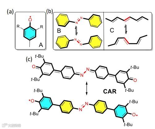 作为近年来非常热门的前沿材料,双自由基材料由于存在一对自由电子而具有的独特化学反应活性和成键规律,使得它在理解化学键上具有独特的作用,进而引起科研界的广泛兴趣。同时,π-共轭自由基材料在有机自旋电子学的研究中展现了广阔的应用前景,然而π-共轭自由基材料柔性结构相关的自旋弛豫和自旋迁移依然是目前的研究难点。传统的Kekulé式π-共轭双自由基分子(基态为单线态)在随温度升高的情况下会呈现出分子结构不断由醌式结构向芳香式结构的转变过程。