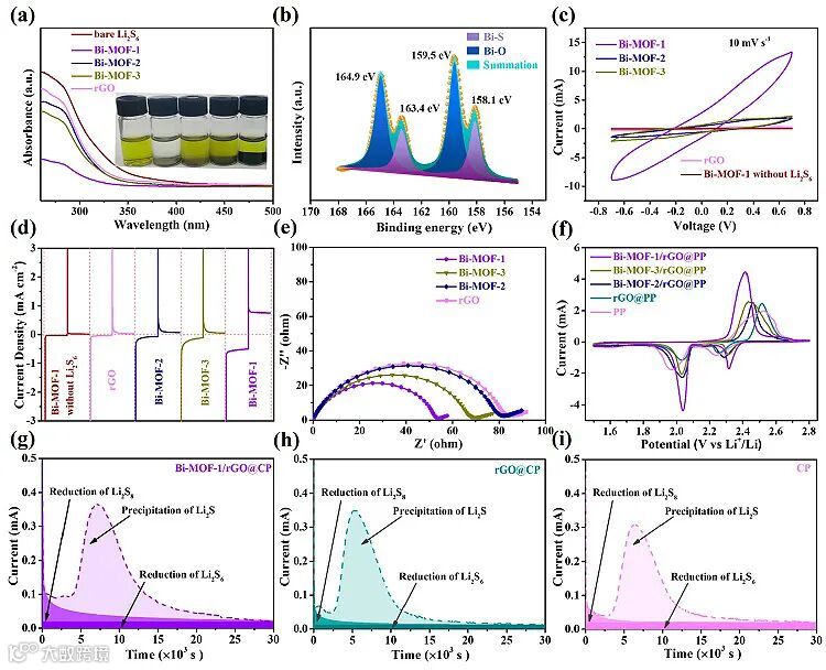 图2. Bi-MOFs对LiPSs的吸附以及催化转化性能