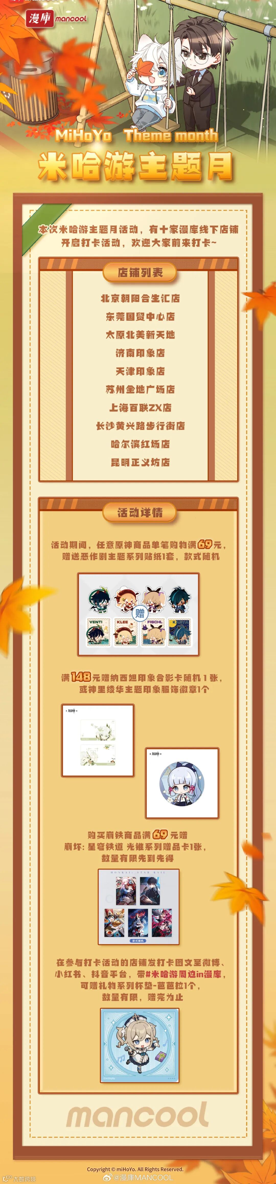 11月1日——11月30日,主题月期间到漫库门店,即可参与以下活动哦~