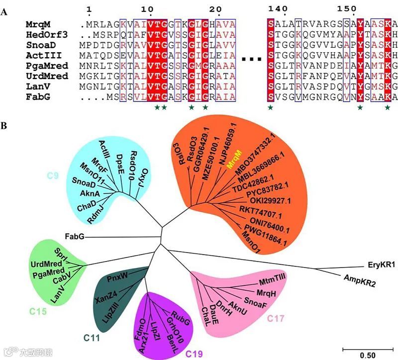 图2. 聚酮化合物中典型的SDR家族蛋白的生信分析