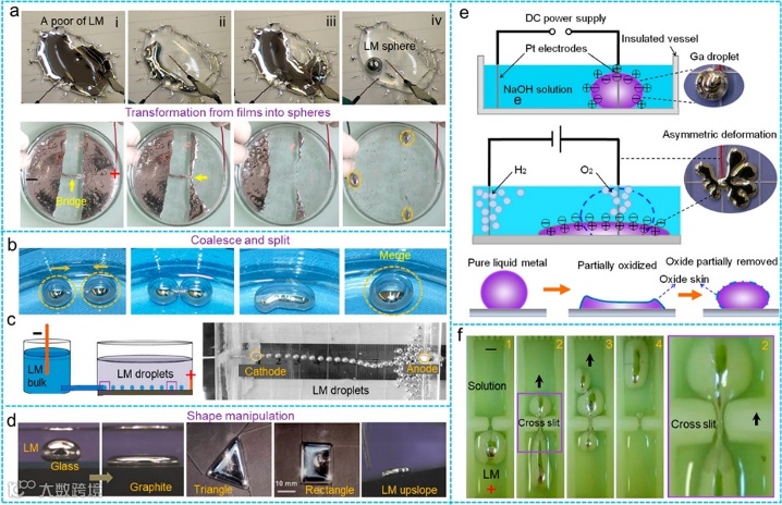4. 切身体会到“偶然发现”对于新领域的催生有着多么重要的意义。我们掀开液态金属机器人研究的大门有一定偶然性,起因是当初开展液态金属神经连接与修复试验时,受电学诱发金属液滴旋转所触动,这促成了液态金属可变形机器乃至后续更多基础现象的发现,直至形成一个全新的柔性机器人领域。