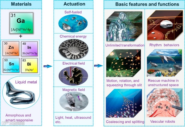 液态金属机器人已被公认为机器人领域最具发展前景的重大方向之一,相应研发机会众多,不完全列举如:各种液态金属功能材料的发明,以及由此引申出的超常构象转换、变形与运动机理、调控方法乃至机器人原理的构筑等;与此同时,液态金属与生物学、机器人、电子以及智能科学等的融合,可望进一步促成液态金属可变形机器人理论与应用技术体系的革新,同时也为各有关学科前沿提供了丰富的研究空间。