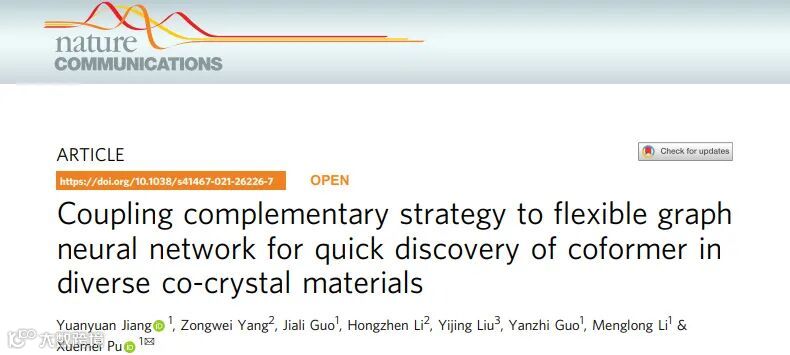 近日,四川大学化学学院/化学与生物信息学实验室蒲雪梅教授团队在Nature Communications 杂志上在线发表了论文,开发了一种普适性强准确度高的深度机器学习的共晶筛选模型,该模型可灵活应用于多种领域的共晶预测(药物、有机功能以及含能材料等),大幅提升了机器学习对共晶虚拟筛选的泛化能力和准确度,其构建策略可为深度学习在其它领域的应用提供了参考和指导。文章的第一作者是四川大学化学学院的博士研究生江源远,四川大学蒲雪梅教授为通讯作者,中国工程物理研究院的杨宗伟博士提供了含能共晶的实验验证。