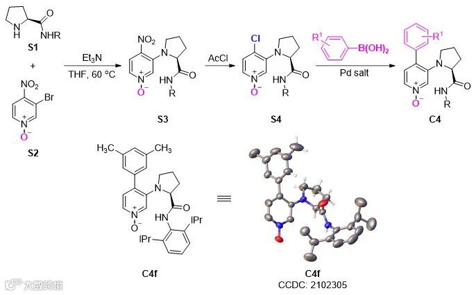 手性ArPNO催化剂的合成路线如图3所示:基于4-氯吡啶N-O,通过一步偶联反应,即可得到目标催化剂。