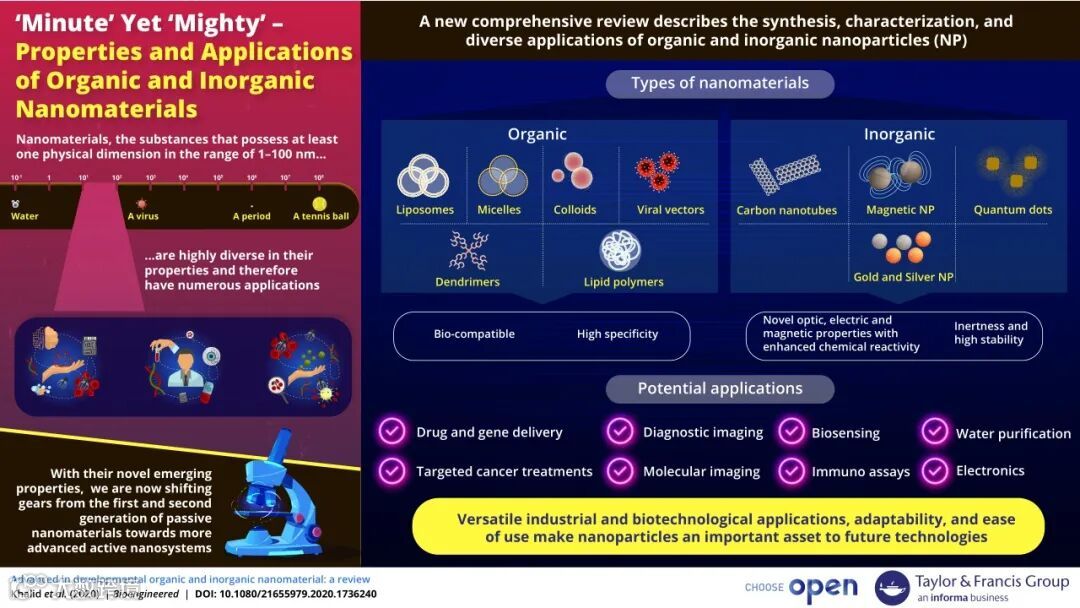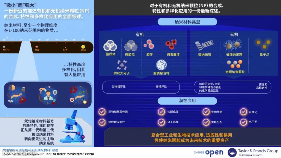 为提供有用的见解以帮助未来开发用于大规模生产的高效和商业上可行的技术,本综述重点关注无机和有机纳米材料的科学和应用,强调它们的合成、加工、表征和在不同领域的应用,并且深入讨论了纳米材料在成像、细胞和基因递送、生物传感器、癌症治疗等方面的应用以及纳米科学技术的未来前景和挑战。