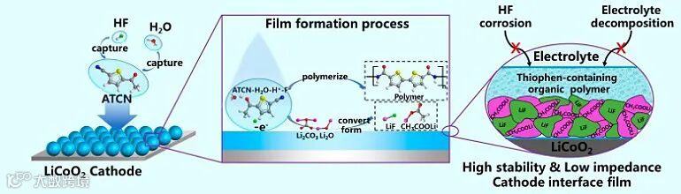 图1. ATCN在LiCoO2正极上的反应机理示意图