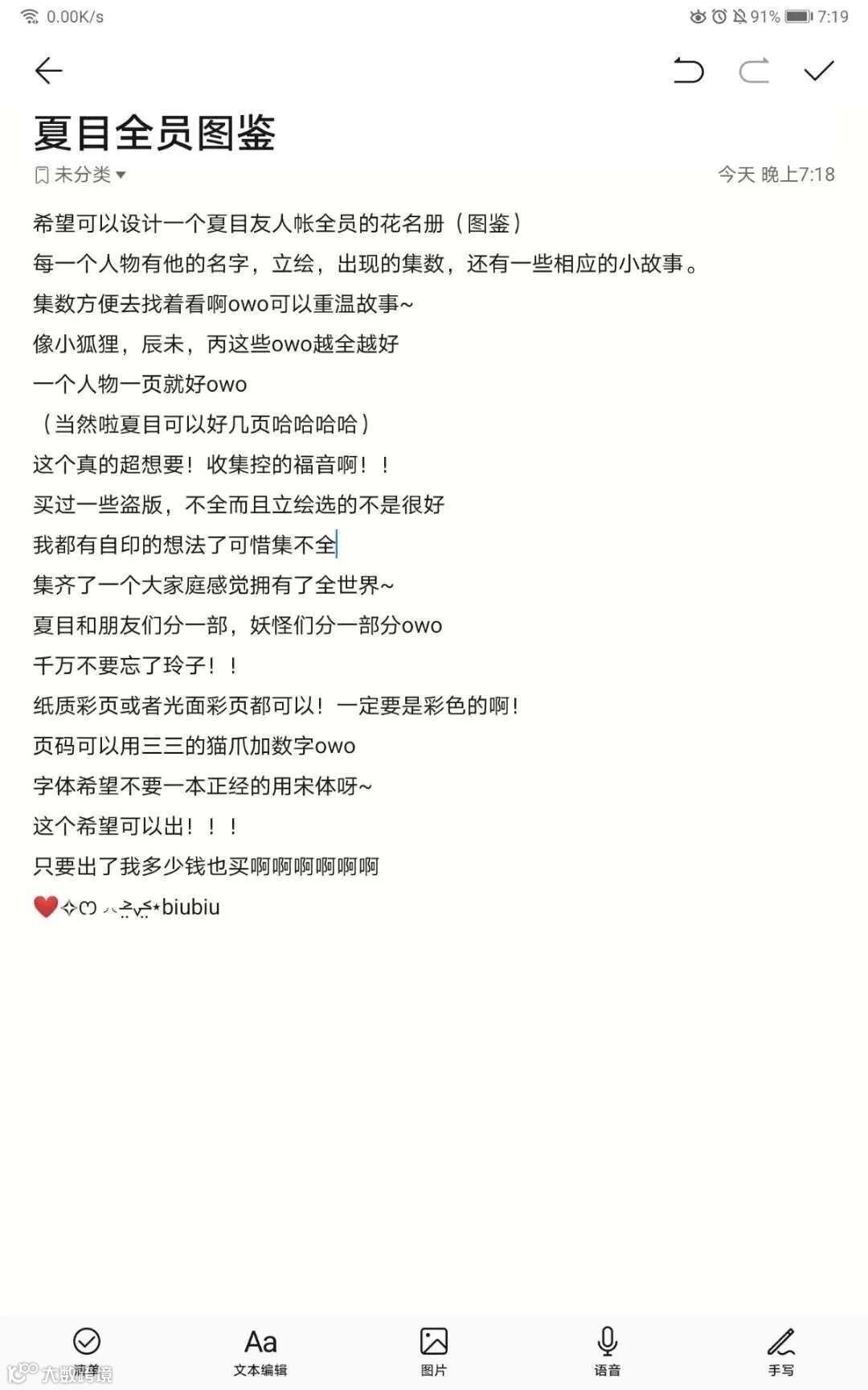 我们希望做出夏目粉真正喜欢的周边,所以大家可以通过【简单手稿、草图或一段简单的文字】,把理想中的夏目周边描述出来投稿给我们。