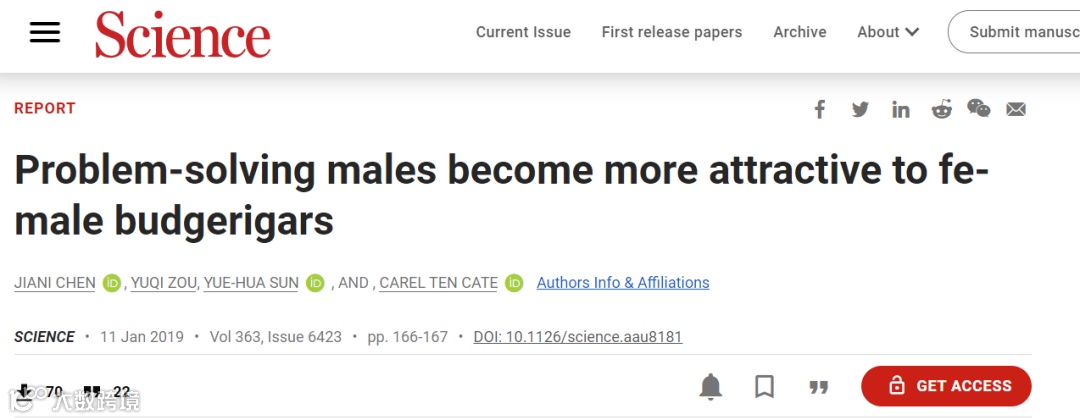对此,一个中国科学家团队在Science上发表论文,研究结果表明,善于解决问题的雄性虎皮鹦鹉对雌性而言更具吸引力。