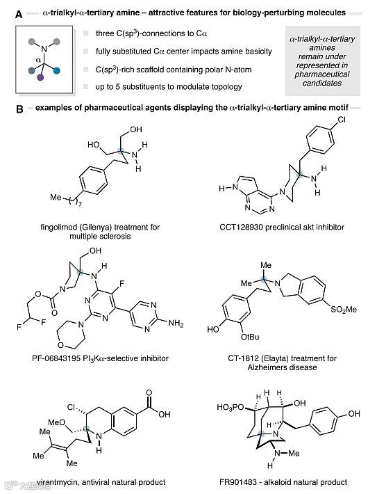 图1. 含有α-三烷基-ATA结构的药物分子。图片来源:J. Am. Chem. Soc.
