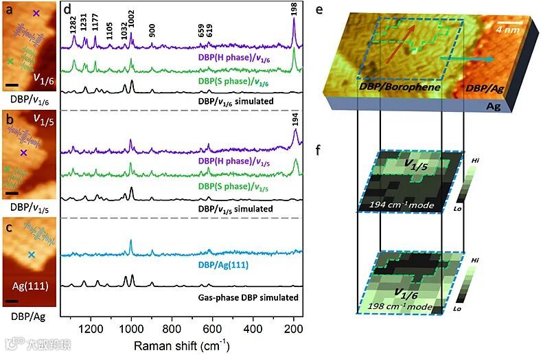 图2. DBP/硼烯异质结构的UHV-TERS研究以及亚表面成像