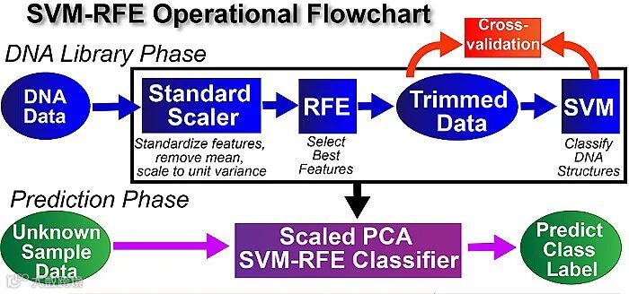 为了最大化地利用从感应分析体系中得到的大量数据,在这项最新的研究中,该团队使用了机器学习来处理阵列数据,实现分类十八条DNA序列结构的分类,并用其分类结果建立模型,成功预测了五条未知结构的DNA序列(图3)。