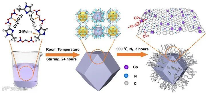 Figure 1. Schematic illustration for the synthesis of (Co1→Cop)/N-CNTs from ZnCo-ZIF.