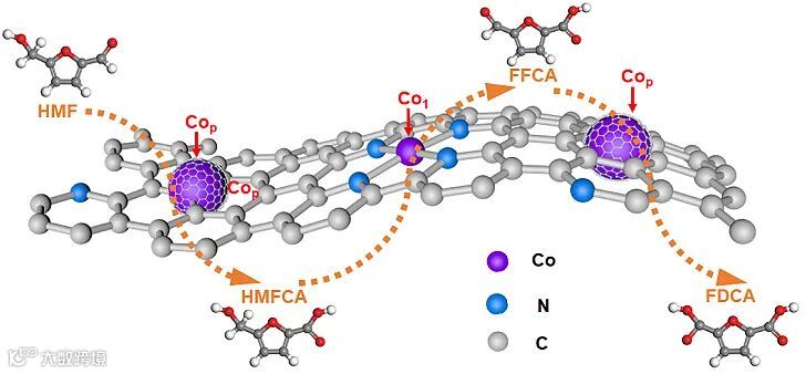 综上所述,该团队设计并制备了一种具有双活性位点“接力式”Co基催化剂。该催化剂具有制备方法简单、易于放大等优点。受益于 Co1 和 Cop 活性位点的不同特性,(Co1→Cop)/N-CNTs 催化剂可对串联氧化中每个基元反应加速,从而以“接力式”的方式实现HMF的高效转化,该研究为多中间体级联反应用催化剂的设计提供了一种新的思路。