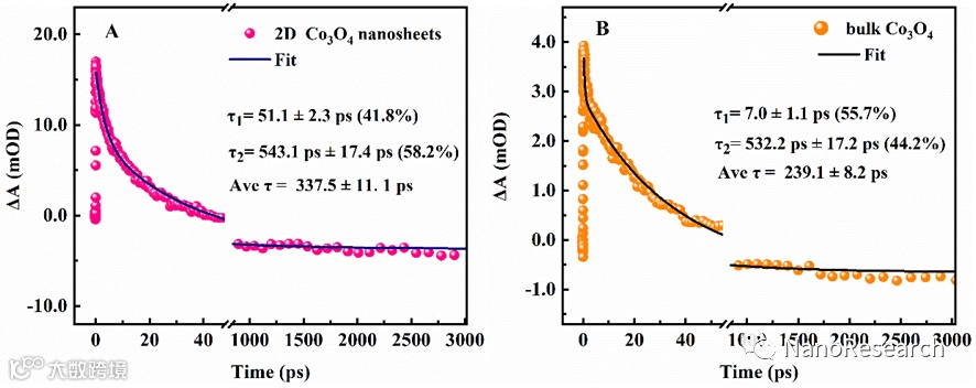 2D超薄Co3O4纳米片τ1电子时间寿命是块状Co3O4的7.3倍,有效地促进活性氧组份的产生。